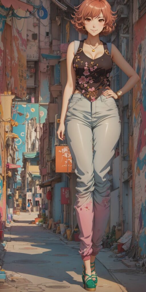 ノースリーブの少女 ショートパンツ プロンプトを少し変えるだけでイラストは変化して様々な表情を見せてくれます。 彼女の、魅力は少し睨みつけた視線にある。髪は茶色の艶やかなセミロングで、顔の輪郭を優しく包み込む。目は少しキ