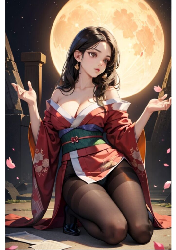 Kindleでイラスト集を販売する 今回描いたイラストは、美しい女性が着物を着ている様子を描いたものです。 このイラストは、日本の伝統的な美しさとモダンなエレガンスが融合した一枚です。着物は、日本の文化と歴史を象徴する装